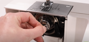 Now take the bobbin and insert in the small circle in the bobbin’s top hole.